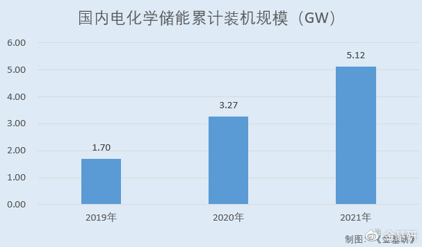 据中国化学与物理电源行业协会储能应用分会的统计数据,2019-2021年,国内电化学储能累计装机规模分别为1.70GW、3.27GW、5.12GW,近三年复合增长率达73.54%。