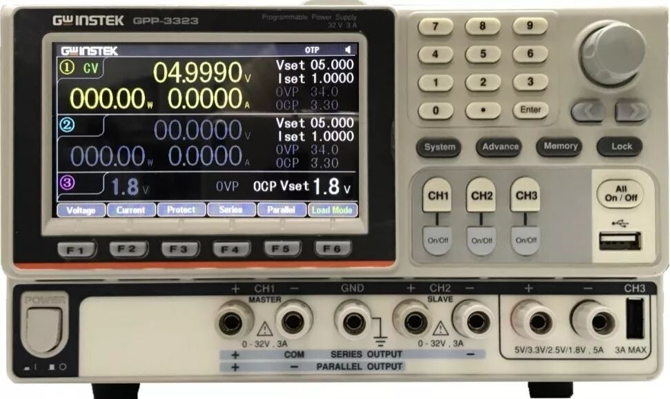 此外,Trigger In/ Trigger Out功能可以同步外部装置;GPP-3323通道3(Ch3)增加3A USB(Type A)输出端子,可以做USB充电测试;智能温控风扇可以依据功率晶体的温度,调整转速,降低不必要的噪音。输出值设定及Sequence/Delay/Recorder功能分别提供10组记忆体供使用,且可利用U盘载入/储存。GPP系列除了标配有RS-232及USB远程接口外,还有可选配的LAN或LAN+GPIB接口,方便于不同的用户需求。指令上符合SCPI的要求,且可兼容GPD-x303S系列直流电源的指令。