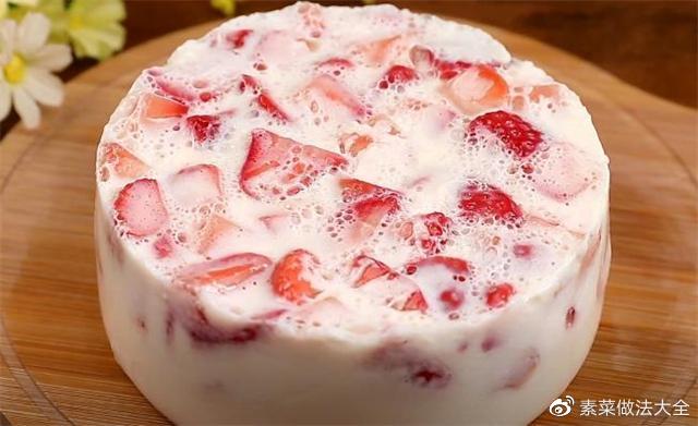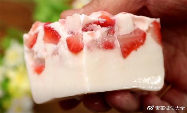7.这样一道美味的草莓牛奶果冻就做好了。