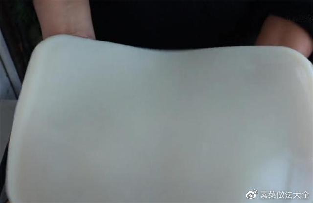 4.现在这个凉粉成型了,把凉粉倒扣出来,给大家看一下,特别的光滑、筋道、Q弹,这个凉粉可以凉拌着吃,也可以炒着吃。