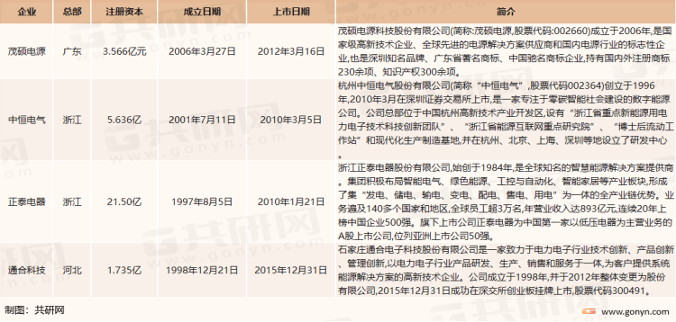 从营收情况来看,2022年1-9月茂硕电源营业总收入已完成11.41亿元,中恒电气营业总收入已完成10.22亿元,正泰电器营业总收入已完成350.20亿元,通合科技营业总收入已完成3.90亿元。