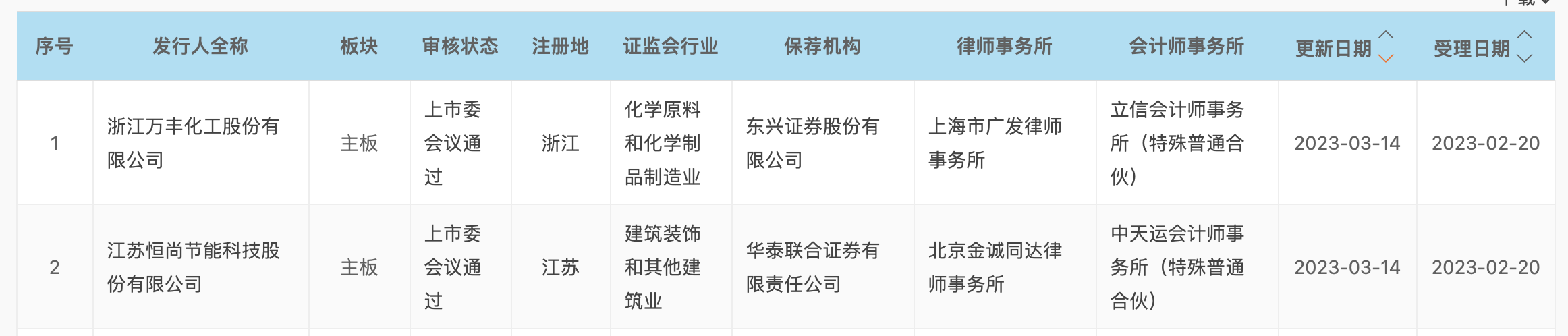 据沪深交易所官网显示,3月14日,万丰股份、三联锻造、长青科技、恒尚股份、翔腾新材等5家主板IPO企业成功过会,成为全面注册制下第二批成功过会的主板IPO企业。
