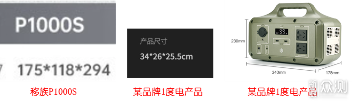 对比下京东上找的其他几个1度电容量的户外电源的尺寸,果然是差很多的。下面均截取自京东详情页截图。