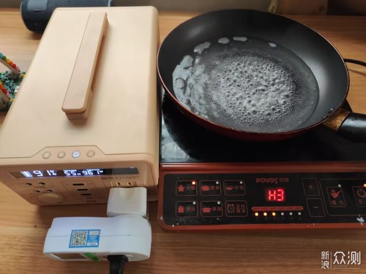 同样的测试,用电磁炉试试看,实际的三挡可以用,961W,而且这个功率可以烧55分钟,如果只是两三个人的户外使用,用电磁炉炒菜或者做菜也是完全足够了。