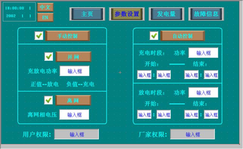 选定自动控制,输入充电时段与放电时段的功率值,输入开始与结束时间。确定后,自动开始冲放电。