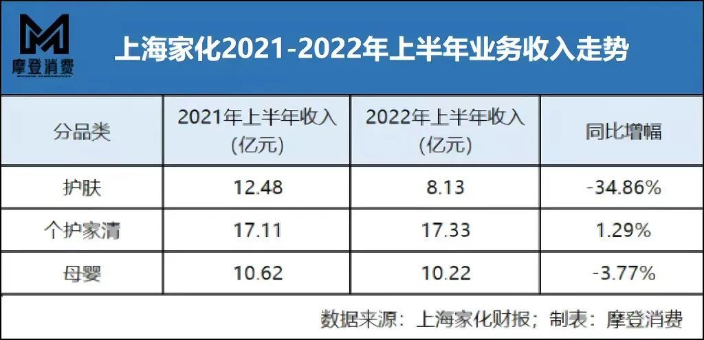 2022年上半年,护肤品业务实现营收8.13亿元,同比下降34.84%,收入占比也大幅下降至21.91%,连带公司净利润大幅下跌约45%。