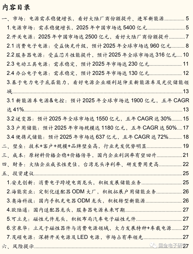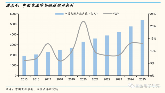 1. 电源市场:需求稳健增长,2025年中国市场达5400亿元
