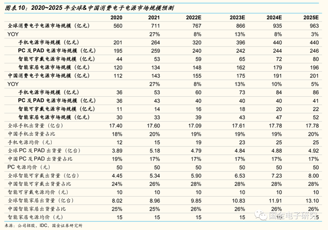 2.1消费电子电源:受益快充升级,预计2025年全球市场达960亿元