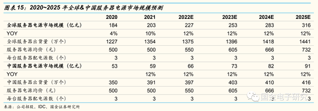 2.2服务器电源:受益芯片性能提升,预计2025年全球市场达316亿元