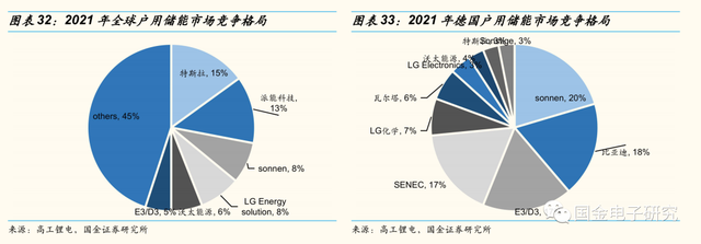 ◾从全球竞争格局来看,特斯拉凭借突出的品牌优势、市占率达15%,派能科技次之,达13%。从电价最高、户用储能渗透率最高的德国市场来看,sonnen、比亚迪市占率领先。