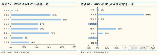 ◾从成长性来看,得益于大陆电源厂商逐步实现品类拓张,份额持续提升,过去五年成长性优于台湾大厂,其中奥海科技2016~2021年电源收入、归母净利五年CAGR达35%、17%,领先行业。2022年Q1奥海科技收入、归母净利同增30%、27%,位居第一梯队。