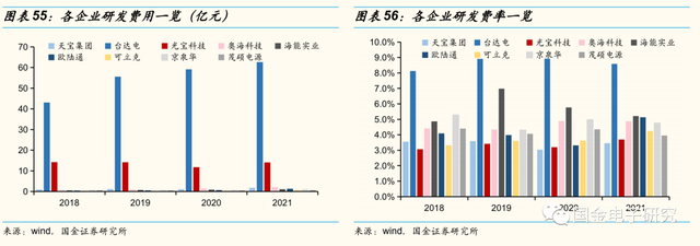 ◾ 研发费率方面大陆厂商已追平台湾厂商,但后者研发费用更高。2021年台达电、光宝科技研发费用分别达64、14亿元,研发费率达9.00%、3.70%,而大陆厂商研发费率和费用较高的是奥海科技,分别为5%、2亿元。