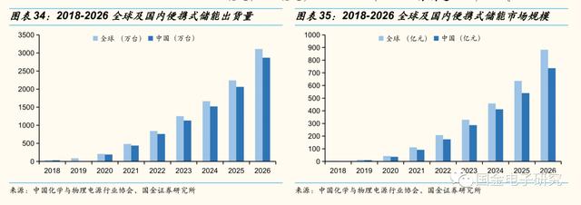 ◾根据中国化学与物理电源协会预测,全球及国内便携式储能将会随户外用电需求以及自然灾害引起的应急需求增长而增长,预计2026年全球及国内便携式储能出货量将分别达3110万台,2867万台,对应市场规模分别为882亿元,737亿元,2021~2026年CAGR分别达51%,52%。