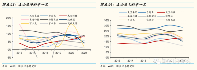 ◾我们选取台湾头部电源厂商台达电、光宝科技与大陆厂商奥海科技、海能实业、欧陆通、可立克、京泉华、茂硕电源、天宝集团进行财务对比。