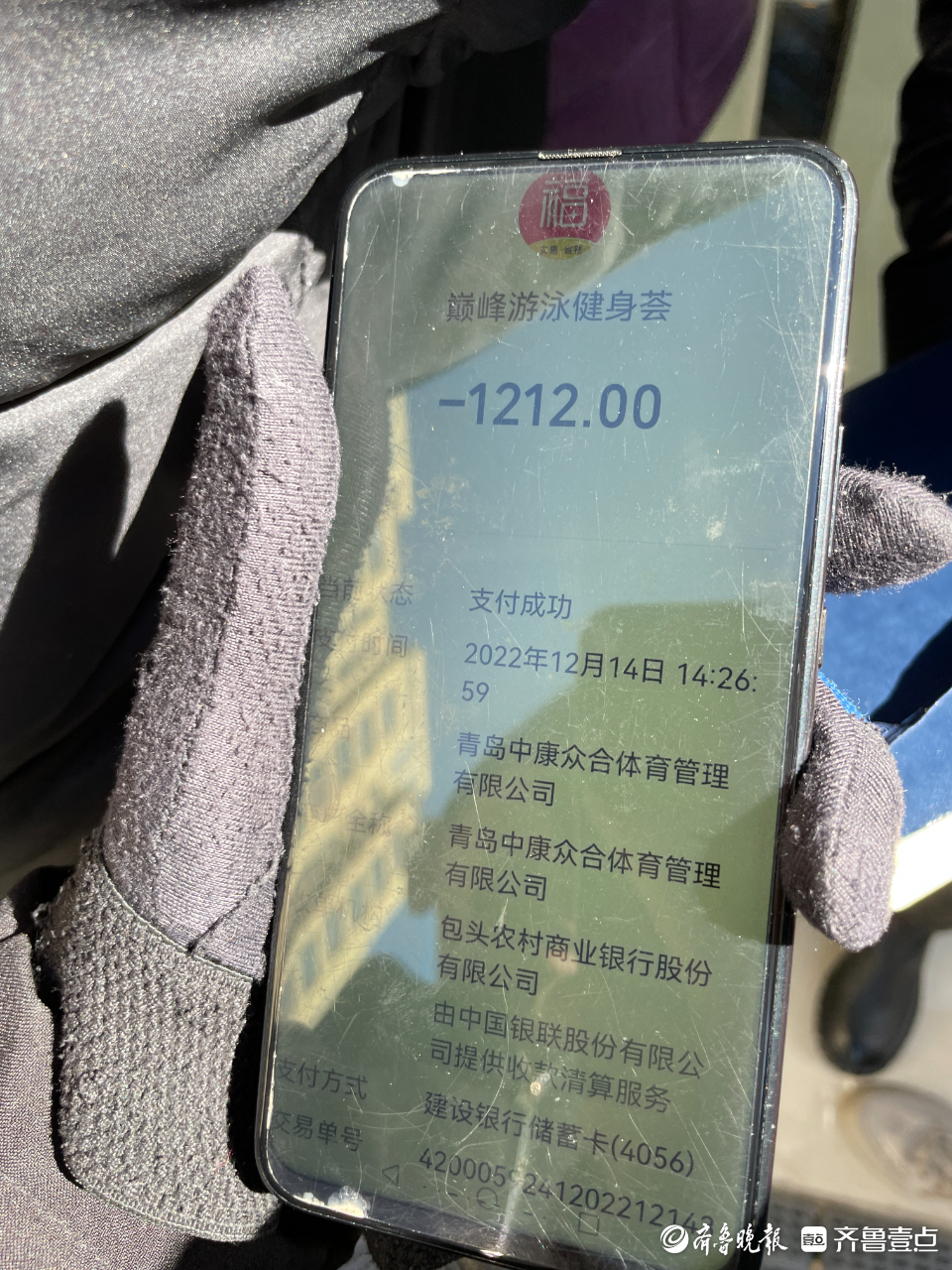 日前,市民柳宏向齐鲁晚报·齐鲁壹点记者反映,位于青岛市李沧区蓝山湾二期的巅峰游泳健身荟自从去年12月关门后,至今一直没消息。她在网上查询健身俱乐部注册的电话,都打不通。“我当时办的年卡,花了1880元,买一年送一年,2023年12月到期,这还有将近一年时间呢,就关门找不到人了!”作为一名体育爱好者,53岁的柳宏自7岁就开始游泳,几十年来一直没有停止过体育锻炼。她说,因为这家健身俱乐部离家近,才选择了办年卡。