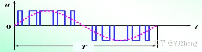 如果在一个“半周期”内,我们通过技术,将这个“方波”变成半个周期(0-π)的“正弦”波,就完成了全部“逆变”的工作了。