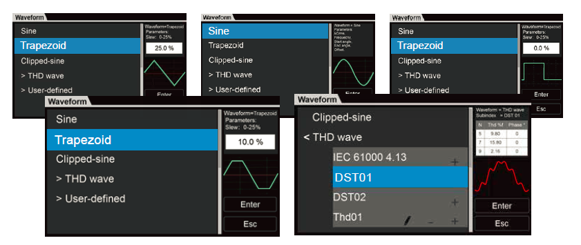 ”以及“含纹波的直流输出波形”,为用户提供更宽范围的测试应用。用户同时可以选择单相、三相、反相和多通道四种输出模式模拟不同的测试场景,也可以通过STEP、LIST 以及PULSE 三种LIST模式,来模拟各种电源瞬间断电、突波、缓升等特性。