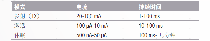 为了优化电池使用寿命,您应该对器件性能进行表征,并了解器件在每种模式下的电能要求。这可能会比较困难,因为每种工作模式有其自己的电流消耗范围,通常各不相同,休眠模式下只有几微安,而在发射模式下能够达到 100 毫安。