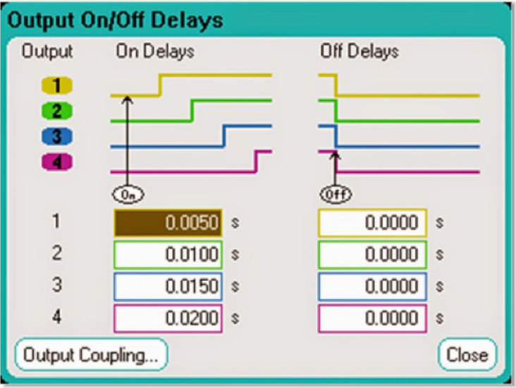 当所有输出需要同时开启时,时延会自动激活,使输出按顺序开启。