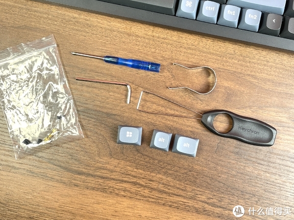 配件方面比较齐全、连接线、WIN和MAC不同系统的键帽 3个、备用的 螺丝、说明书、拔键器、拔轴器、螺丝刀一应俱全。