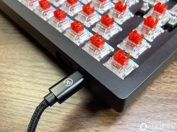 Keychron V7 的数据先采用C2C的形式,外加一个C2A的接口转换器,而数据线本身则较长,同时还贴心的赠送了收线带,不但能够实现远距离的使用,同时也兼容了对于台式机、笔记本的双重使用场景,好评。