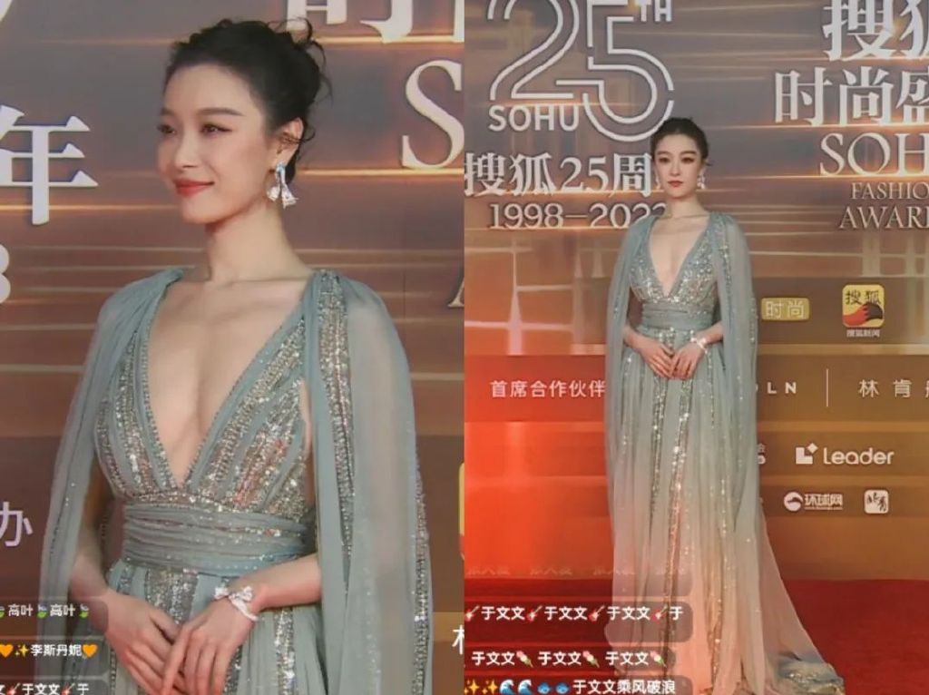 红毯上还有好几位参加过《浪姐》的女明星,她们秀起身材来也是一个比一个努力。于文文选了一条银灰色亮片一字肩长裙,高开叉的设计顺便秀了一下长腿。在裙子已经很闪耀的前提下,还要用卷度过高的长发搭配大红唇,似乎有点用力过猛了,组合在一起反倒增添了几分俗气。