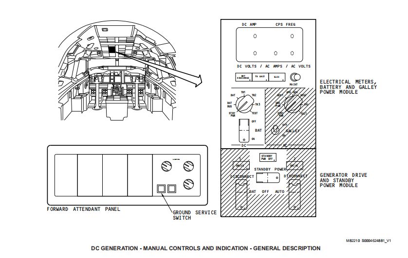 DC GENERATION直流电系统产生并控制28V直流电源供飞机使用。