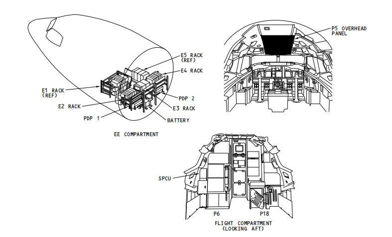 ELEC灯在P5-13面板,当面板内部或者电系统出现故障时,该灯点亮,同时主警告灯和警告牌上的ELEC灯也点亮。SPCU监控备用电源系统的部件,当以下任一情况发生时,SPCU使得ELEC灯点亮:SPCU内部继电器故障