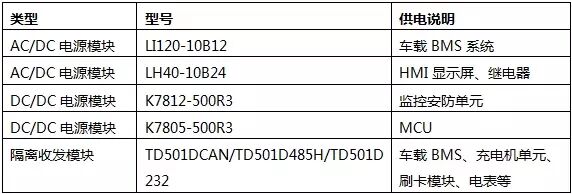 电源部分中,首先需考虑大电流充电情况下BMS的辅助供电。在最新的国标中将此电源统一标定为12V10A的电源,且后续在BMS管理方面,乘用车与大巴车的BMS供电系统将统一标准。因此,此处推荐选择具有主动式PFC功能的LI120-10B12输出12V给BMS系统供电。
