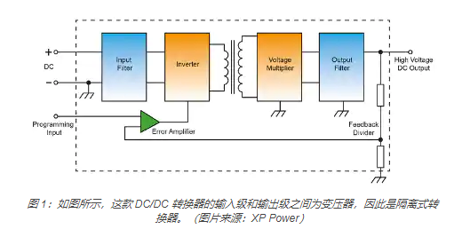 顾名思义,DC/DC 转换器将直流电源的输入电压转换为其他直流电源的输出电压。输出电压可以低于输入电压(降压转换器),也可以高于输入电压(升压转换器)。DC/DC 转换器可以是隔离式,也可以是非隔离式。隔离式 DC/DC 转换器的输入和输出之间使用变压器,因而不存在直流路径(图 1)。
