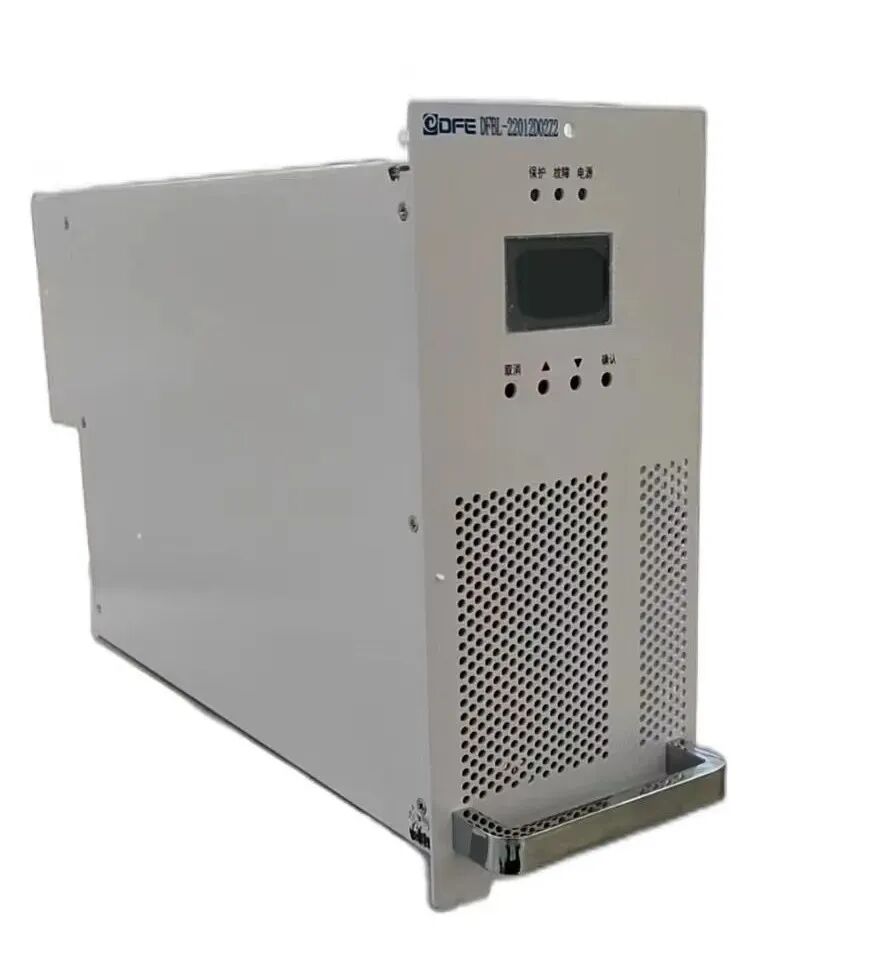 并联型直流电源系统的核心组件为电源模块。模块采用单相交流输入,直流110V/220V输出,采用高性能DSP数字控制、谐振软开关、有源PFC技术,并具有多项专利保护。集成了电源变换、充电和DC/DC升压电路功能,外接1节或2节12V蓄电池,可通过通信实现模块间负载均衡(均流)。模块具有完善的保护及告警功能,包括输入过/欠压、输出过/欠压、过温、过流等,每个直流电源模块具备对蓄电池的智能在线维护管理,包括状态监测、自动维护、在线核容功能。并联型直流电源模块实物如下图: