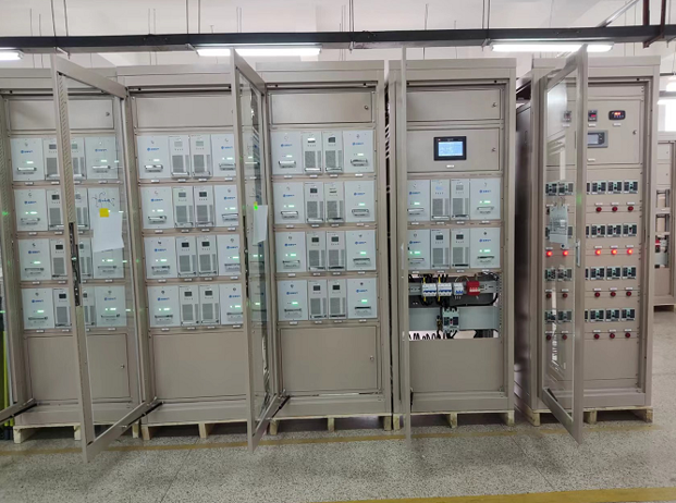 系统核心部分为并联型直流电源,该子系统采用并联型设计思路,经N+X个直流电源模块高压输出端并联组成,各模块单独配置一组或两组12V蓄电池(组)(可选阀控铅酸蓄电池、磷酸铁锂电池或超级电容),独立向直流母线供电并经内部通信实现负载均衡。