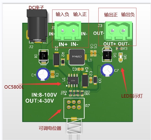 本方案非免费,需要下载完整内容的朋友请拉到本文最下方,点击阅读原文查看!其他电子工程师相关资讯以及板卡试用等活动,请关注上方🔝与非网公众号!简介:该模块使用OC5800L芯片,用于可调降压稳压,实现宽电压输入(8V到100V直流输入)、大电流输出(2A)可调电源(0V-30V可调输出)设计,具有恒压作用。- END -