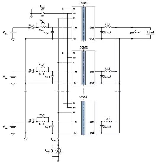 由于其负电压温度系数,利用DCM转换器系列,各自单元中的温度变化不是问题。如果一个电源的加载比其他电源多,相对于其他电源其温度会上升,这反过来会导致其输出电压降低。由于其他并联DCM的输出电压与加载DCM的输出电压相匹配,其输出将跟随其负载线,从而增加其负载电流的共享,使电路回到平衡。