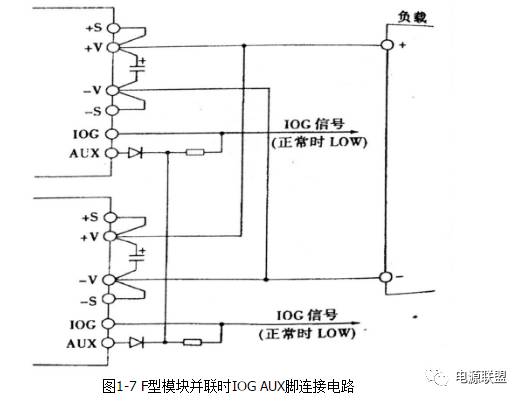 PH系列F型并联工作时,IOG和AUX脚连接电路如图1-7所示。AUX脚必须外接一只二极管。