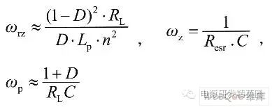 其中D为占空比,Lp为初级电感,RL为负载电阻,C为输出电容,Resr为输出电容等效串联电阻。