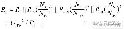 其中对于多路输出的负载RL,是指控制输出端的等效负载。按照文献提供的思路,将其他各路输出都“映射”到5V反馈输出,从而可以得到: