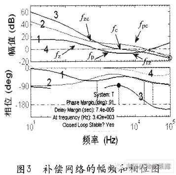 2)设定补偿零点fzc=1/3fc=l kHz,补偿极点fpc=3fc=9kHz,满足fc/fzc=fpc/fc。