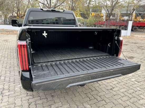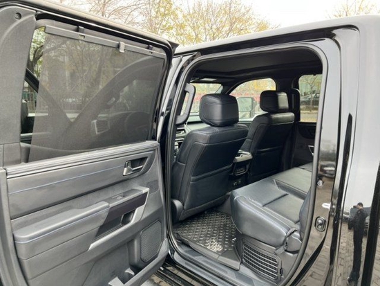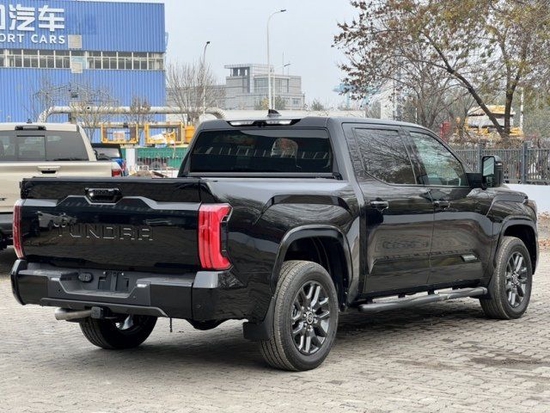 丰田坦途LTD TRD两侧泪痕造型LED矩阵大灯视觉效果并不输给福特猛禽(配置|询价)。车身侧面看也有了方盒子外观效果,甚至还要熏黑车窗立柱营造出悬浮车顶。