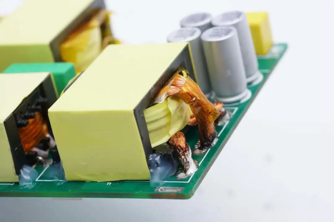 PFC电感采用利兹线绕制,磁芯涂胶固定。