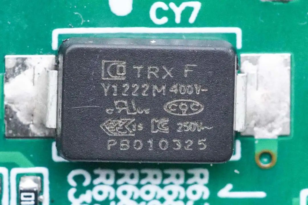 贴片Y电容来自四川特锐祥科技股份有限公司,具有体积小、重量轻等特色,非常适合应用于氮化镓快充这类高密度电源产品中。料号为TMY1222M。