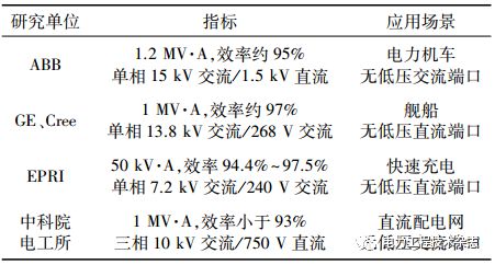 4.2 电力电子变压器电力电子变压器是一种具有变压器功能的电力电子变换器,集电气隔离、电压变换、能量传递等功能于一身,可实现交直流互联和接入功能。目前电力电子变压器已是国内外研究热点,在电路拓扑、控制以及样机研制上均取得了一定成果,各机构电力电子变压器指标如表4所示。
