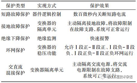 3.2 直流配电网保护技术由于接入了多元化的分布式电源、负荷、储能,直流配电系统存在多种不同的运行状态。同时,直流配电网在电气特性及测量方式等根本性技术上跟交流配电网完全不同,没有低成本、可商业应用的大容量直流断路器,相关直流保护技术和装备既缺乏标准,也缺少运行经验。因此,直流配电系统保护配置面临诸多挑战。