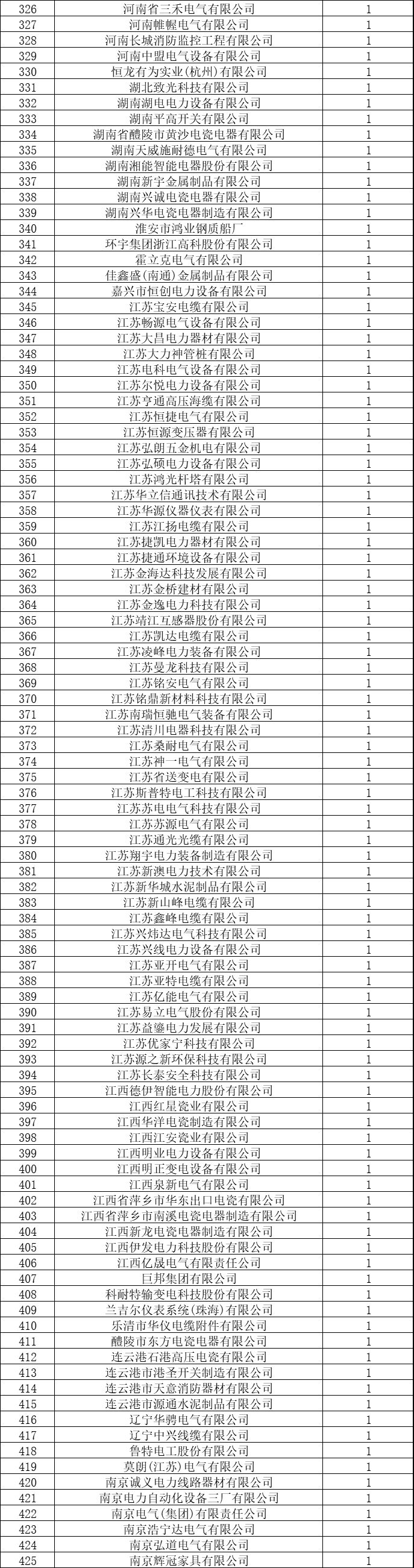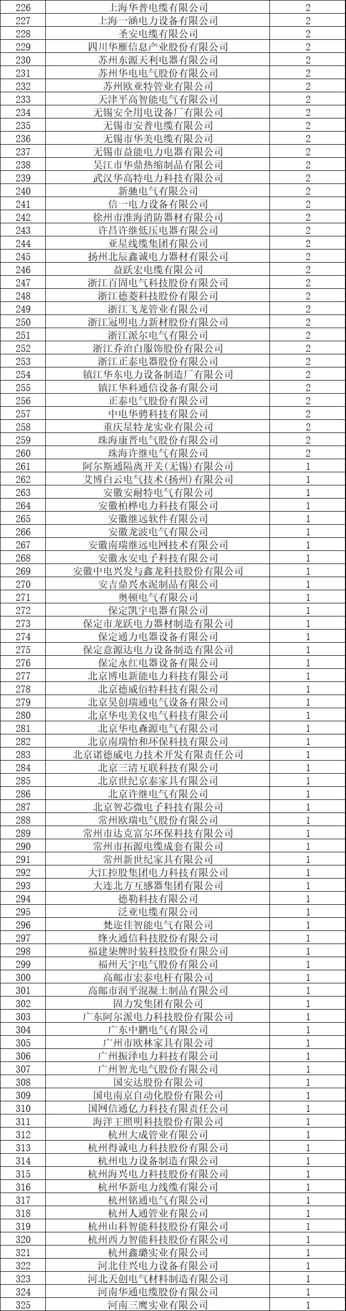 在中标的601家企业中,江苏安方电力科技有限公司以中标37个包排在第一,中标物资包括:一二次融合成套环网箱、蓄电池组、10kV环网柜、低压电流互感器、视频在线监测装置、直流电源系统和零散物资等等。