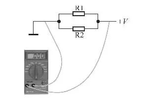 电路断电情况下,用万用表电阻档测量并联电路的总电阻,正常情况下,测量的总电阻值应该<R1<R2。