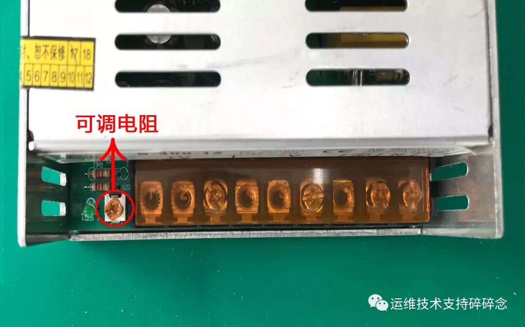 2.1、若直流输出低于12V则需更换整个开关电源(或旋转可调电阻使电压达到12V以上,可调电阻存在问题、后续电压还会降低,需要尽快更换整个开关电源回公司维修)