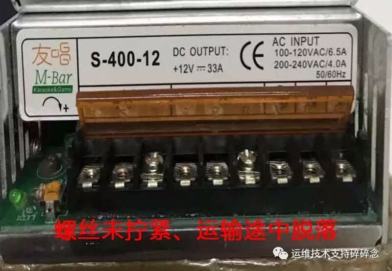 现在友唱12V大功率开关电源有:LRS-350-12(长虹350W电源)、S-400-12(小耳朵400W电源)和S-600-12(小耳朵600W电源)三种型号。这三种型号是通用的。适用于使用2.0DC智能控制中心”的机型:后期一代机,全部二代机主要为以下部件供电:智能控制中 32寸显示屏和23.6寸触摸一体显示屏 功放板 照明灯设备排气扇机顶盒路由器