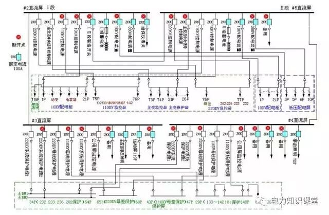 3、用分网法缩小查找范围,将直流系统分成几个不相联系的部分。注意:不能使保护失去电源,操作电源尽量用蓄电池带。